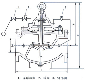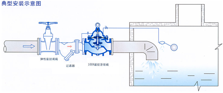 100X遙控浮球閥是兼具多種功能的水力操作式閥門。主要安裝于水池或高架水塔的進水口處,當水位達到設定的高度時,主閥由浮球導閥控制關閉進水口停止供水:當水位下降后,主閥由浮球開關控制打開進水口向水池汪水,實現自動補水。液位控制精確,不受水壓干擾100x隔膜式遙控浮球閥可隨水池的高度及使用空間任意位置安裝,維護、調試、檢查方便、密封可靠,使用壽命長。隔膜式閥門性能可靠、強度高、動作靈活適用于4 50mm口徑以下的管道。DN 500mm口徑以上的建議使用活塞式。