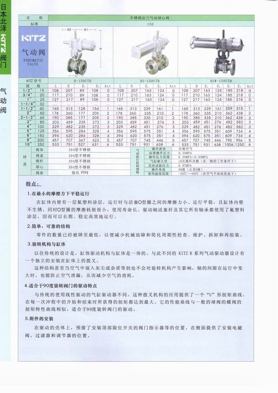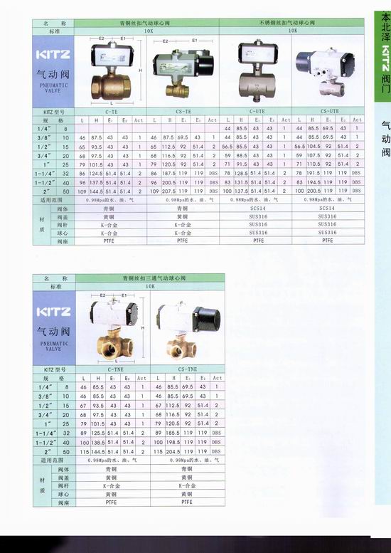 日本北澤KITZ氣動球閥:氣動內螺紋球閥是由雙(單)作用氣動活塞式執(zhí)行器和內螺紋球閥組成。其閥體可分為整體式、二段式、三段式。閥座采用彈性密封結構,密封可靠,啟閉輕松。閥桿采用有倒密封的下裝式結構,閥腔異常升壓時,閥桿不會被沖擊。氣動活塞式執(zhí)行器采用低摩擦材料做成軸承套,缸體內外表面經(jīng)硬質陽極氧化防腐處理,提高了氣缸的使用壽命。本產品使用性能穩(wěn)定,廣泛的用于石化、冶金、電力、輕工、醫(yī)藥等工業(yè)部門