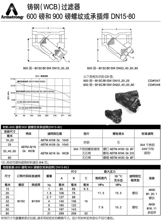 272kg和408kg的螺紋或承插焊過濾器,12.7mmC76mm