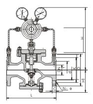 六、YK43X先導(dǎo)活塞式氣體減壓閥外形尺寸(PN6.4-16.0) 單位:mm